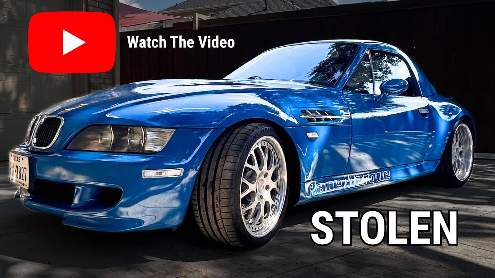 Dallas, TX — A distinctive, race-modified 2001 BMW M Roadster was reported stolen from a business parking lot in northwest Dallas, according to a report filed with the Dallas Police Department.